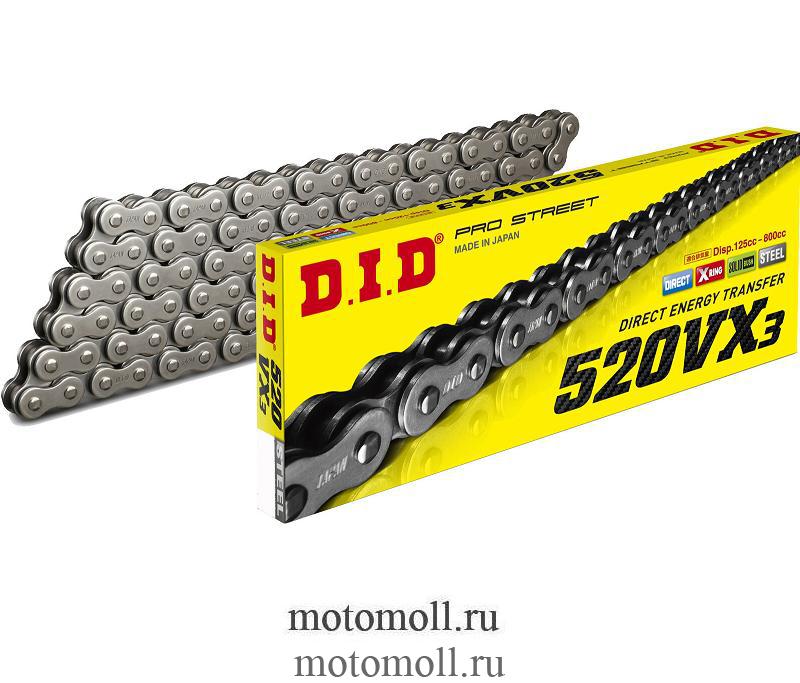 Мотоцепь DID 520VX3-110 звеньев с замком под расклёпку ZJ (для дорожных мотоциклов до 800 см. куб.)